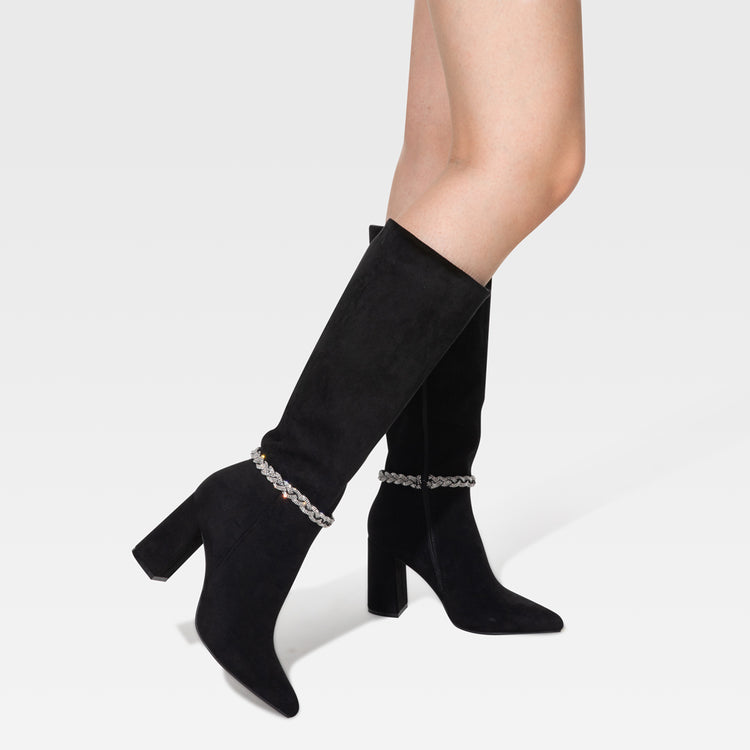 Tipo de producto: Bota Mujer Gerardo Color: Negro Material exterior: PU Suela: TPU Altura caña:35.7cm Altura plataforma: 0.35cm Altura taco: 8.8cm Tipo taco: Cuadrado Estilo: Moda